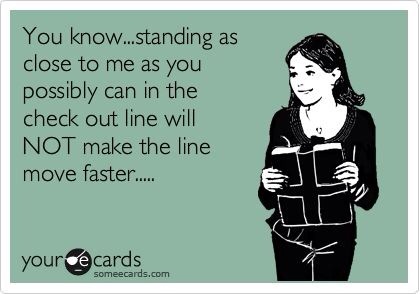 Here’s a tip: If you see me inching away from you in line, that is me trying to regain some personal space so I don’t stab you. It is NOT an invitation to move even closer to me.
