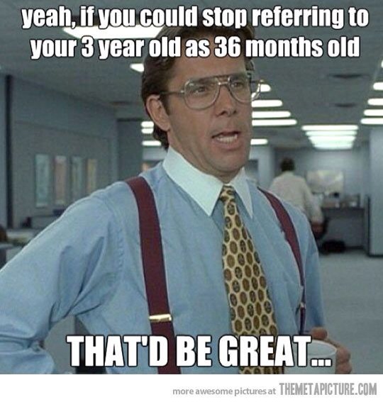 Because let’s face it, past 12 months, I’m too lazy to do the math. Stop making me to try to decipher the actual age of your 45-month-old. It’s not cute.